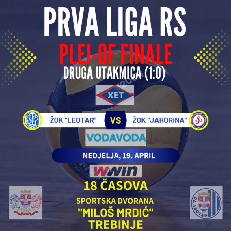 U prvenstvu Republike Srpske u konkurenciji odbojkašica, danas na rasporedu je revanš finalni meč plej ofa, a u Trebinju će se sastati ekipe Leotara i Jahorine.