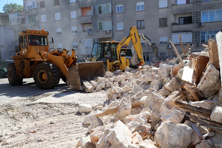 Počelo je rušenje ruiniranih objekata iznad glavne zgrade Gradske uprave, u Ulici Luke Petkovića, u centru grada.