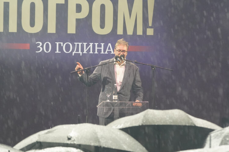 Predsednik Srbije Aleksandar Vučić izjavio je danas u Sremskim Karlovcima na obeležavanju 30 godina stradanja Srba u vojno-policijskoj operaciji “Oluja” da nijedna “Oluja” više neće uspeti. On je optužio međunarodnu zajednicu da je pomagala svima u okruženju da ojačaju, a samo je Srbiju slabila. Prepričavajući kakva je obećanja od međunarodne zajednice dobio pre tri godine u vezi sa izborima na Kosovu, on je u jednom trenutku poručio “Sram vas bilo, barabe jedne”.